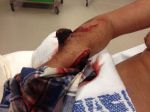 tomorrow 10/3/14 I go into theatre for the 6th time to have the plastic surgery done as so far they have put titanium plates and screws to hold both the bones in place, all the tendons and nerves have been tied up to each other(as seen in the photos), and goodness knows what else they have done during the 23 hrs. in total that I have been in theatre. I moved my fingers a tiny bit more today and now have a bit of feeling in the figures 3 out of 5 presently so looking good.