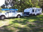 Our greatest ordeal so far was to turn up a wrong road, which was narrow and the road base a mixture of gravel and dirt, it was hardly wide enough for the van to pass withour brushing the bush. A few kilometres down the road it was looking worse, so after stopping my wife took a short walk and came back with the news turn around here. Lucky there was a small clearing in the bush and I was able to jack knife the van up a small bank in 4 X 4 low range after removing the WDH, then jack knifed back in the opposite direction and we were off again, Sure glad we did that Tow-Ed course a few days earlier.
