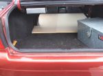 I removed the Back Seat and Replaced it with a solid Shelf I made.. With Lock down point's that held in place the boxes I carried..