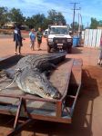"The photographs are genuine and they do show a large crocodile caught at Borroloola in 2009. However, the reptile, which was considered a danger to local residents, was killed by NT Parks and Wildlife officers, not a local fisherman. The email description also exaggerates the length of the croc, which was estimated at around 5.5 meters."