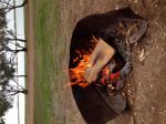 So they all left. The Easter Campers, the nomads.... And then were just 3 vans. being a master wood scavenger, I scavenged. I have wood to burn for days. Then I found a rusty iron fire guard. It's a big beauty in that it protects the fire from the wind, and radiates the heat. my camp fire is hot, hot, hot! And using stuff all wood. I have had one huge bit of gum going for hours.