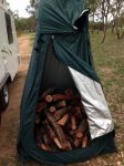 then I found a nearly new chair in the skip. Then a shower tent with a broken zip. So, I've stacked most, not all, of the wood I have, in the shower tent to keep it dry. I also have wood under the van and in the back of the car!!!!