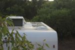After talking to David (Plendo) about his research as well as the van manufacturer (Coramal) we decided to have the flexible panels bonded directly to the aluminium panel roof.The reasons for this are twofold. Firstly the weight involved in mounting rigid panels with the framing advised by the caravan maker. Secondly we do almost all our travelling during winter so heating of interior of van would not be a problem. Yes we do loose efficiency due to heating but have ample panels for our power consumption. To date three weeks after fitting have not needed any external power input travelling in Vic and southern SA.