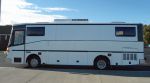 She's a 1992 MAN 10180 cylinder diesel mini-coach. She recently (just finished today) got her windows removed to be reclad and have motorhome windows fitted. We think she looks great! The work was done by CP Motorhomes in Ulverstone Tasmania; they were fantastic with us, would recommend them to anyone. She also has a built in tyre inflater thingy (attached to her airtanks), which comes out the front bumper, as seen in the last picture - Troy built that.