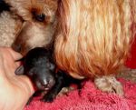 Well folks,we have bitten the bullet and finally got ourselves a forever friend in the form of a boy toy poodle who we have named Cosmo he is brindle at at present 3 days old and 185 gms we pick him up from near Tamworth in Middle July very excited have already scoured the pet shops and got him a home and playthings.