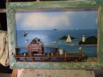 Another one !! All boats , mammals/ birds and jetty (teak) are hand crafted. Frame is pine and the pylons are driftwood. Ocean is acrylic.
