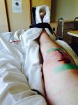 Looking familiar Phil. I had a lateral Release about 15 years ago and two days after getting home on crutches was knocked to the ground by my crazy wild step son who proceeded to get stuck into my knee with one of the crutches.