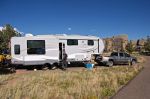 We are basically "Goldielockers", "Not to hot and not to cold, just right!" So we go north or up in elevation when it gets hot and reverse when it gets cold. Two years ago we were "mootchdocking" (camped in younger son's backyard) when it go to 103 F (40 C) so we moved up to a place called Long Draw at 10400' (3240 metres) and it go down to 38 F at night (4 C). We had Moose within 100 m, Deer and Coyote wandering through campsite and Hummingbirds draining the feeders. Attached is photo of why we headed south last year.