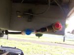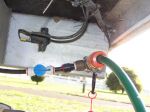 hi m an d , ours were the same a real mongrel to fill , big improvement was to get under and make sure tha that the filler hose once it leaves the fitting you put your fill hose into , dosent have any bends in it if it does go up and down over a chassis rail or whatever it will create a air pocket and thus water blow back , cant get past the air pocket , we did this , found one small rise and fall enough to make it blow back every time , staightened it out , and big improvement or once again also check your breather tubes although unlikely , but you neve know , good luck or try this , use your over flow or drain bungs in your tank coupled together , to a non return valve , a nylex brass hose fitting and connect to tap , drain tap at end of line you use to connect the tanks , use your normal fillers as breather when filling we did this in the end , we get a lot more in our tanks too and no blow back , i,ll attach a few pics