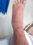 Grams, I slipped on gravel in my son's driveway. It's very sloped and I should never had tried to walk that way. Marj, they were good ortho thongs but I don't think it would have mattered what footwear I had on. The big bruise up the leg was from the initial fall and slide. The fracture is from the ankle joint and up the fibula to the outside, if that makes sense. I can't remember the proper term. The swelling and redness has dissipated but I'm still on antibiotics.
