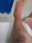 Beth thought she had twisted her ankle on some loose metal whilst wearing thongs. Turned out when she got it checked that she had a fractured ankle. Not sure why the bruising is so far up her leg though.