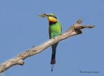 Jules, the bird is a Gouldian Finch or sometimes called a Painted Finch. The one in your photo is a young bird and the colors haven't fully developed. I used to keep and breed them when I was a kid. The head color can be red, black or yellow. You'll find more information on this site. http://en.wikipedia.org/wiki/Gouldian_finch They are quite common in N. T. and northern part of W. A.