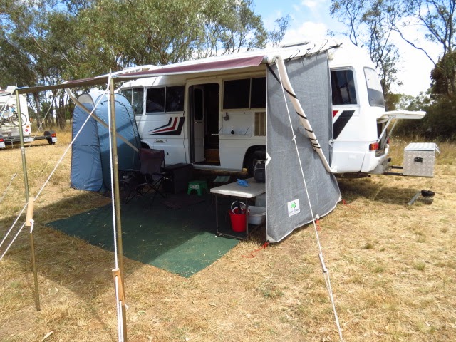 Got the choofer out and it is sitting there ready for me to get enthusiastic about outdoor cooking. Not got much wood, Jeurgen has some in his trailer but I have yet to get out the chain saw to cut it down. There was a pile left over near Dennise's bus and we missed it when another camper came up with his ute and scooped it up.