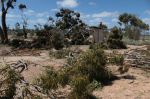 Drove from Norseman to Woorlba Camp 50 km past Balladonia on Tuesday. An attractive camp I stayed at in July. WELL - what a mess. There had been a mini typhoon through the camp on Monday night. Tree uprooted which missed the loo by inches, and branches down everywhere. Not a tree in sight that didnt have some damage or had been uprooted. A motorhome lady and I managed to drag a tree out of the way so we could get to the camping areas. I wondered if anyone was back there during the storm - maybe not as the track out was blocked. Odd thing was it seemed such an isolated hit. Still trees around the emergency phone 100m up the road and only one on the ground over the road.