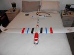 The only one I travel with is the white one in the smaller picture,Bixler. Easy to dismantle and assemble for transport,no wheels so land on sandy beach etc Hand /throw to launch.The prop is mounted high and to rear for this reason.The larger white plane is a Cessna 186 model 1800mm wingspan 5kg flying weight