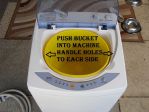 Our machine came with a fairly solid plastic unit that sits into the bowl and top of machine to stop it rocking around........hopefully we wont need to go for your idea eventually, otherwise the BOSS will have me looking for a bloody PINK bucket !!