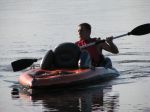 Into the water and it is very wide so probably difficult to fall out from, one of the campers said that it needed more air and I said that it only needs .5 psi and all would be well. My maiden voyage lasted around 30 minutes, forget the opera nets, it was enough to get to know the kayak. Hopefully the exercise will do my shoulder good and if I point the paddle downwards it is less painful.