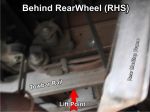 This last pic shows the Towbar Rail, there's a large 10mm thick plate (you can't see it) that's on the other side of the rail and that goes up on the inside of the Chassis. The plate uses the 2 bolts holding the spring hanger and a new bolt through the chassis in a reinforced hole. You can see this bolt its the newer shinny one. The lift point would be about middle of these bolts. The right side is the worst cause you also have to get around the exhaust pipe.