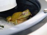 We had a torrent of rain yesterday afternoon (yaay) and our water tanks overflowed. The green tree frogs were having the time of their lives.