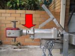 This is a Tregg with override brakes, and the lever pointed to by the arrow is the one Hey Jim has to flip over when he reverses his trailers. Without that lever you can see how the shaft would get pushed back agaqinst the brake lever and cause the brakes to be applied.