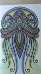 ADULT COLOURING IN. Another one completed. I feel this is something akin to the process applied by Tibetan Buddhist monks when they do their coloured sand mandalas (a meditative process). I measure my marginally high blood pressure at home and, as an experiment, I measured it before and after doing an hour of this and there was quite a significant lowering in the latter reading.