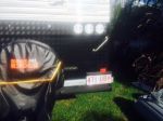 I moved mine from its normal position at the back lower right corner of the Jayco, because when I fitted the box on the bumper, it no longer allowed the plate to be visible from 45 degrees sideways. Simplest fix was to put on the back of the box. Since I only needed one light for the plate (the taillights and blinkers weren't obscured) I tapped into the wires behind the number plate light and from there ran wires to the new light. The old light still works, just lights up nothing. Seems to me a lot of trouble to go from the plug, unless of course your wires are hidden in the back wall. Even in that case I'd be looking for them under the van somewhere. My bracket was a piece of aluminium which I think was originally part of a road sign. I love recycling.
