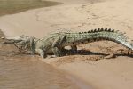 This freshwater croc unleashes some explosive power escaping to the safety of the water.