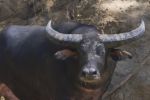 We surprised this wild Buffalo on the bank of the Daly River. Up close they are mean and powerful, this bull climbed an almost vertical mud bank to get away into the scrub.