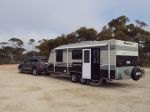 We tow our 2014 Supreme Spirit Series II with our Jeep Grand Cherokee Limited and it is a great combination. We have 420 watts of solar on the roof and a 120 watt portable panel if we're in the shade. The van has 240 Ah of AGM batteries. We used to carry a 2.0Kw generator too, but since I upgraded the solar we are generally back to full charge before lunch each day, so the generator has been retired. Water capacity of the van is 190 litres of potable water and 95 litres of grey water. It's a great set up for free camping. The van weighs about 2800 in ready to roll condition, and the Jeep handles it easily. On our trip north/west last year we averaged about 14.8 litres/100km for the 15,000 km we travelled, driving at about 96km/hr where the Jeep seems to have a real sweet spot.