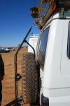 I like the wheel step idea. I currently just open the 4WD door for a hand hold & step up from the running board to one foot on the rear tyre the other on the back seat, shifting the hand grip to the roof rack. Perhaps not as safe or convenient as a wheel step which may make both hands free.