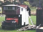 Not mine, but spotted this one near Taupo NZ, complete with lead-light windows, and the chimney being installed