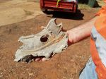 The pics below show some of the damage - the lump of metal in my hand is from a spider on the truck which we found in the fork of a tree about 200 metres from the blast site.
