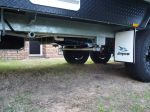 Now everything is positioned about the suspension and the ball weight is sweet. The grey water tank is mounted between the suspension wish bones, I have even incorporated "Hey Jims" LH/RH outlet system.