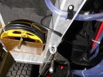 Back under the van we wind onto the fishing caster, all of the cable ( lead first). Secure with 2 cable ties and she slips into the old ammo box. I drilled a 13mm hole thought the hand caster, 2 x 6mm hole through the ammo box fitted 100mm of gal chain via a cup head bolt and 6mm nylon lock nut. to the other side a 35mm pad lock.