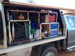 The photo with the heavy camp chairs, Engel frig, a 2nd battery in a portable box, the big plastic box has all my 4x4 gear, 20 litre back up water container, portable light weight chairs for those times you need them, a small folding table, a small fishing tackle box, air compressor, a solf bag of tools, small box of electrical gear. I am able to lay some flat things on ute floor like the axe, small crowe bar, fishing rods, cross cut saw.