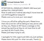 We were in a Moama park in 1993 when we had to move out fast .The water rose to a level 3.5 mtrs above our ground level thats 12 feet in proper lingo .We waited 7 weeks before we could return . We had to leave 4 times in the 34 years we stayed. The Ins co now tells all mobile home owners to leave them in place as they are not insured when left in a paddock etc !