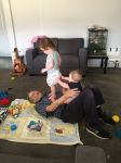 We live on our son in laws property and the two grandies visit the caravan every day (we have a rule on weekend that its 10AM). My 8 year old grand daughter delights in bouncing on my adequate stomach, it doesnt hurt as she is very light. Good bonding and I love her to bits.