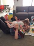 I know where you're coming from AP we have 3 of them as well, 3, 4 and 8 months. We usually mind them 1 or 2 at a time and on the rare occasion we have had all three of them here together - that's a challenge. Love them being here and wouldn't miss it for the world but sometimes you breathe a little sigh of relief when they do eventually go home with their parents. Looks like they are treating you the same way as mine treat me - like a bean bag
