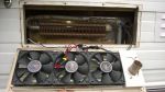 This is how I have overcome the problem with our 90ltr Dometic over heating (a lot). Firstly I installed 2 x 80mm fans on the bottom vent sucking in air and 1 x 120mm fan in the top vent withdrawing air as well as a outside shade over the vents and packed more insulation around the fridge with batts and all done from the outside, this all made a considerable difference but not enough for my liking. Over the last week I looked into the installation and found that the gap between the wall and the condensor was 70mm when it should have been about 25mm (bad installation) not wanting to pull the fridge out I used some light composite ally we use in the sign industry and made an angle to fill the gap, this was lowered in and siliconed to the wall at the bottom of the condenser the theory being that the air from the fans would be sucked over the condenser. For the last 2 days I have had the fridge going with the setting on 4 in 30° + no fans on and no fridge shade the side of the van in the sun and the temp has not gone over 2.8° previously unheard of, Before the baffal it would probably gone to 5 or 6 and when I travelled to Cooktown higher again, just as well we had and Engle in the back of the car. With expected temps of 34° today and 36° tomorrow in Victoria I will see how it goes. In 2 days I will post back and report how it all goes, fingers crossed the problem will be solved.
