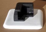 Progress has been slow, but I have had 5 pads made up of fiberglass, I brought some cheap dishes from the Big W for $2 each, to use as molds. Have brought stainless screws and nuts 4mm x 16 long, with the nut fitted into a counter bored recess, the plastic mount fits the pad quite nicely. Next step is to drill and counter bore all of the pads, The fifth pad is to be cut in half and have the center mounts fitted to them. I'll fasten the pads to the roof of the van using Sikaflex 232, no screws into the roof of the van.