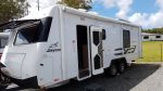 Extras include Internal: Slide out Bedroom and dining , Large fridge and microwave, full gas/electric stove with oven & grill, loads of bench space & storage, Satellite tv sphere system, Ibis air conditioning unit, Front loader washing machine, Solar panels, Bedroom wall fan. All above items factory fitted. External: Rear storage locker, 6 pvc storage pipe, side shade cloth wall, Front all weather wall, Annexe floor, awning anti flapping bars, 2 x awning support bars, all external hoses and fittings included, caravan chocks and leveling pack, hayman reese towbar stabilizing system, 82 Lt extra water tank, Upgraded suspension to increase ATM 600 kgs
