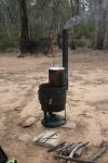 G'day mezza56, This is our cooker. The legs and chimney all pull apart and store inside the cylinder. There is a mesh grill on top or a solid plate when we want to use it just for warmth. We made a square door as it allows a double jaffle iron to pass through it. If you go this style make sure you use a 2.5" to 3" pipe for your chimney so it draws well. Happy travels.
