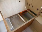 Moved fire extinguisher to seat back near door & converted drop down flap door on end of seat into a drawer to match the other seat.