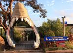 The entrance to the Port Lincoln Caravan Park office, on the bay shore a few kays out of town is, er.. imposing, to say the least! In view of recent events, some West Aussies might find this a bit challenging to pass through - you can skirt around it One of the earliest images I have of myself was taken on a stop during a family voyage on the old Spencer Gulf tour ship 'Moonta' to Port Lincoln and other gulf ports, when I was about a year old. My big sister who was 12 years old was holding me while inspecting a huge white pointer shark hoisted on a Pt. Lincoln jetty, so great whites have featured around those parts for a long time. So much of this odyssey would be a reprise run of journeys long ago for yours truly, with my long suffering spouse just being dragged along for the ride.. well, not quite. It was all new territory and experience for her. And really not much different for me. We were both having a ball!