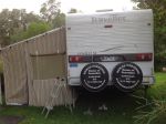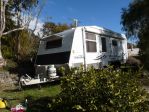 Manufactured 14/09/06 Reg. 9/06.21'6"Semi offroad with Simplicity Independent Suspension and 12" brakes.2x9Kg Gas Bottles.Near new tyres on van.2 spare tyres.2/100AH batteries and solar panel.3x95L water tanks, with 2 pumps(2 serves shower etc, 1 for drinking with filter)Gas electric hot water system.Queen bed.Separate ensuite.Front loading washing machine.Reverse cycle air conditioner and 2 four seasons hatches.External speakers.184L two door three way fridge, tropical ratedInternal battery monitor.Full annex- door and window front and rear,2 windows on side, front door shade.2 detachable awnings for offside of van, with shade for fridge.4 burner stove and oven.2 kva generator Box on A frame.ATM 2750 Tare 2350 GTM 2550.Annex pole carrier on Back.Extra sleeping available by lowering table and placing cushion on top between seats.USB charging points beside bed