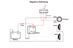 Wal has produced a diagram for you to wire the lights. He makes reference to some Toyotas switching the earth (negative) side of the light circuits being the switched wire. You will have to use your multimeter to work out which side of the lights is switched.