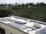 That's a neat installation Davey 123. Just be aware when installing solar panels, a shadow over one or two cells can take out the entire panel, I have made the mistake of installing a panel too close to the air con.