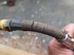 These new hoses certainly don't last long - I fitted a new one just over 3 years ago and made sure I got a quality Australian made one, anyway she failed last week and blew out just above the regulator. My guess is that where it failed is on a bend which allows sunlight to pass through the braid and degrade the hose - rest of the hose is OK although I must add the hose quality is poor as there are a few imperfections in the rubber...not what I thought I'd find in high pressure hose. It's also not reinforced - just a rubber hose like you'd use on a lawn mower fuel line. Admittedly mine spends 90% of it's time in the sun, however you'd think they would be designed with this in mind. Picture are self-explanatory.