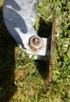 I set to and ran a ring of weld around the outer tube just near the bottom, and also further up. I now have 4 rings to choose from to mount the jockey wheel. This works well for me, but at times with the very bottom ring, the drawbar is too close to the ground and the wheel jams under the drawbar. Minor problem.