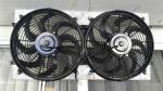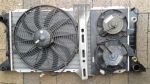 The pic below shows the original fans, as you can see there are several areas not serviced by the fans and the bracket in-between blocks a good portion of the radiator. Additionally the small fans that are more motor area than fan area. Before removing the old fans I tested them putting a piece of paper on the front of the radiator. The paper would hold anywhere the fan blades were directly under. So as you can see there's lots of core area that totally relies on airflow coming through when moving.